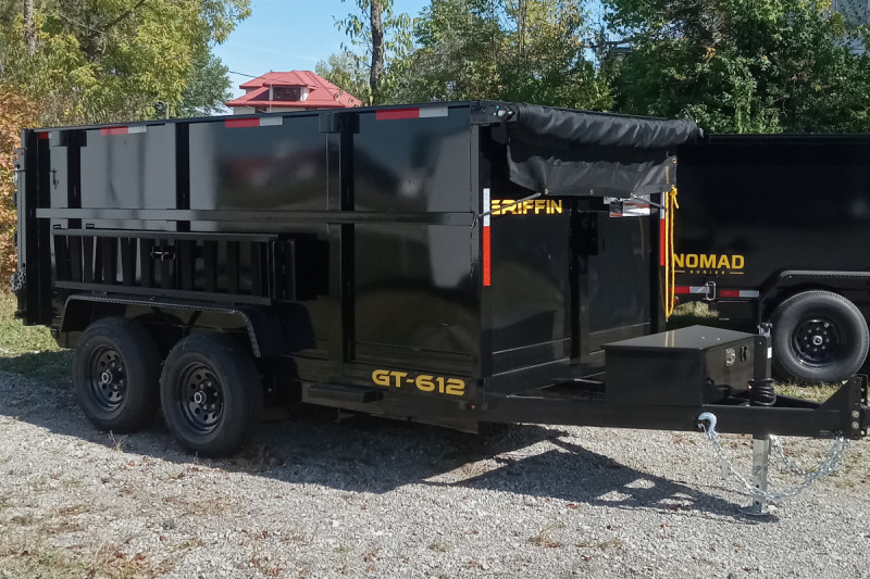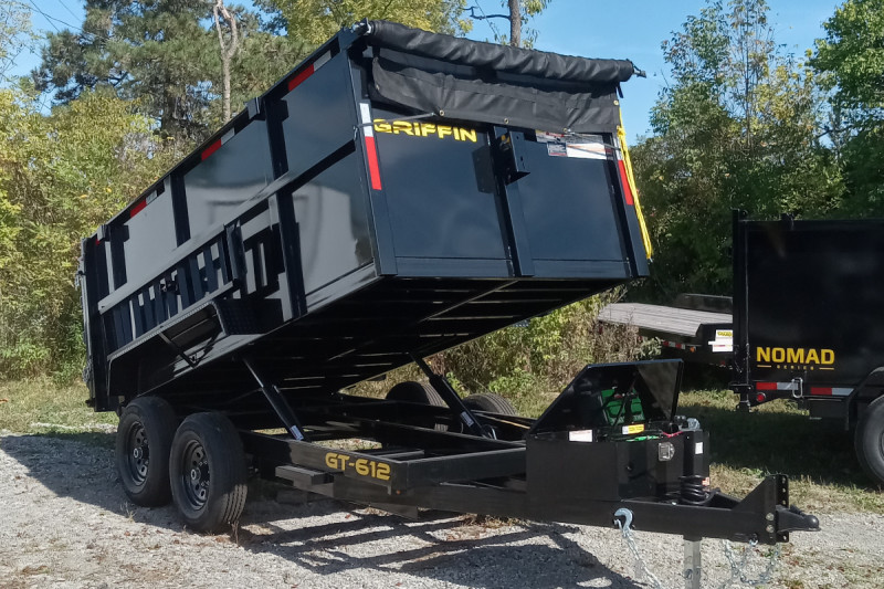 The 2025 Griffin 6x12 TA (tandem axle) high-side is a model of hydraulic dump trailer known for its 6,000+ lb payload capacity and durable steel construction. Its high-side feature, with sides typically available in 36- or 48-inch heights, makes it ideal for hauling bulkier materials like brush or mulch.