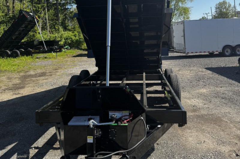 The Griffin GT7x16 telescopic is a 7x16-foot hydraulic dump trailer with a telescopic cylinder lift system. The telescopic cylinder allows for a higher dump angle, ensuring a cleaner and more efficient discharge of materials.