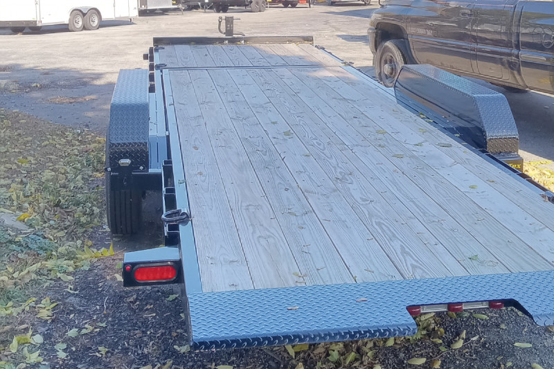 Upgrade your productivity and versatility with the 16TL Super Duty Tilt Bed Equipment Trailer. Coming in multiple models—from 20-feet to 22-feet—this trailer features a stationary front deck and a rear tilt deck, giving you all kinds of options for loading all your low-profile equipment. And with a 12-degree tilt angle and a diamond plate knife edge, loading is a cinch. With sturdy construction and multiple ways to secure your cargo, this thing will haul for the long haul.